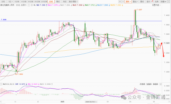 美元对人民币的离岸价经过多次震荡运行,从前期低点6.9651开始再次震荡上涨,目前突破并运行在在MA250均线上方;价格并在4月8日创出7.4287的新高后,出现明显承压回落走势,日内短线行情则建议看空震荡回落的走势。